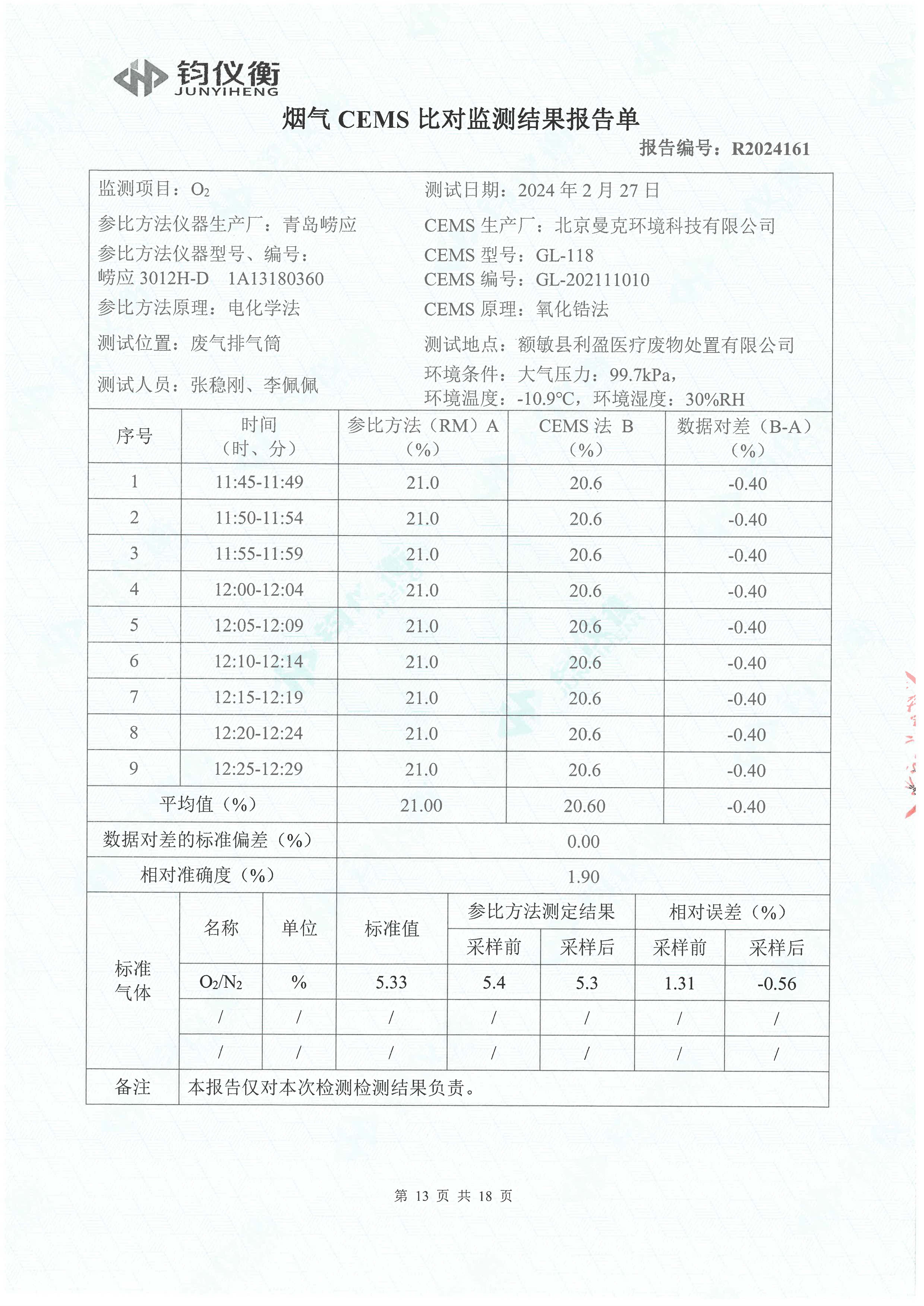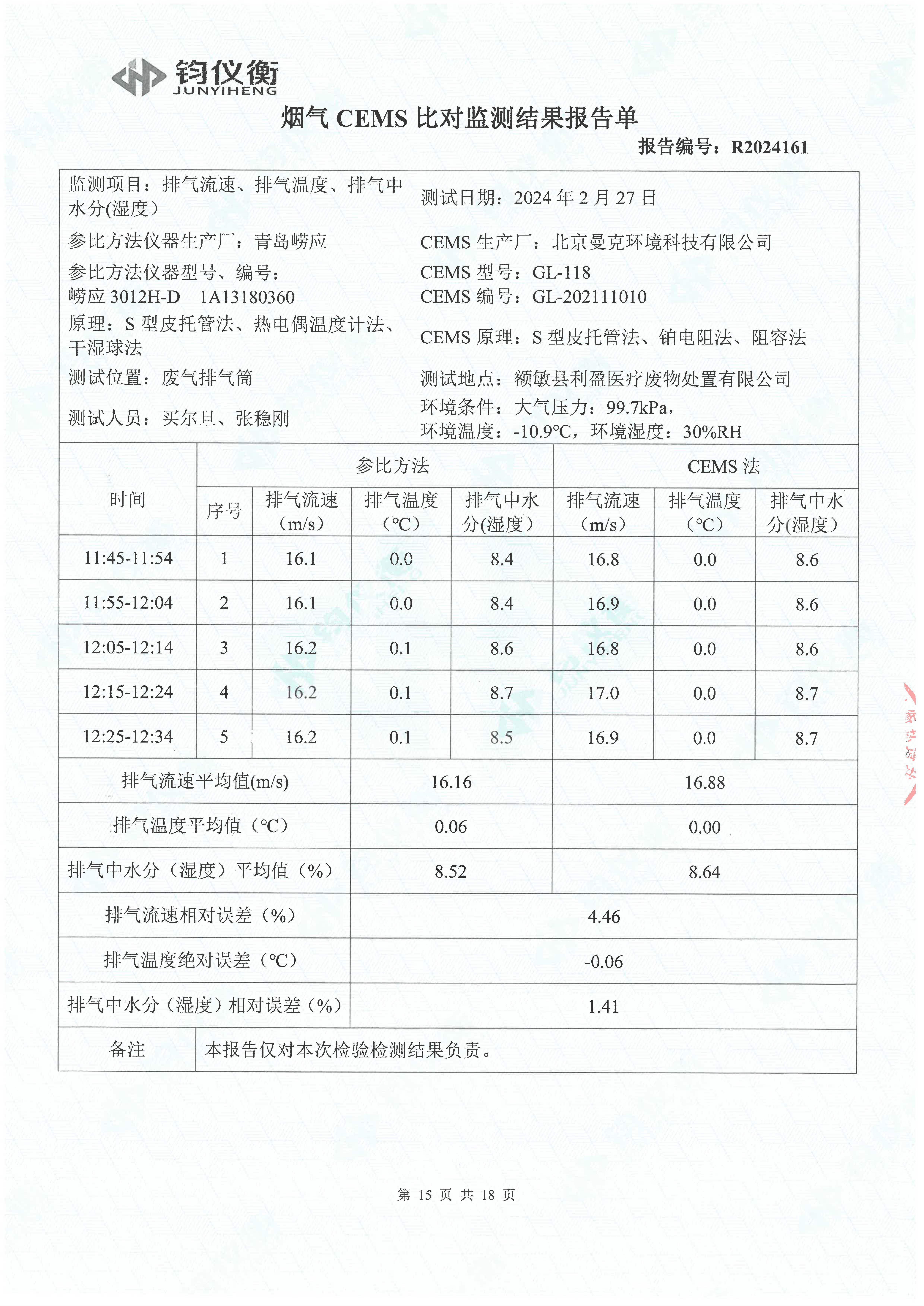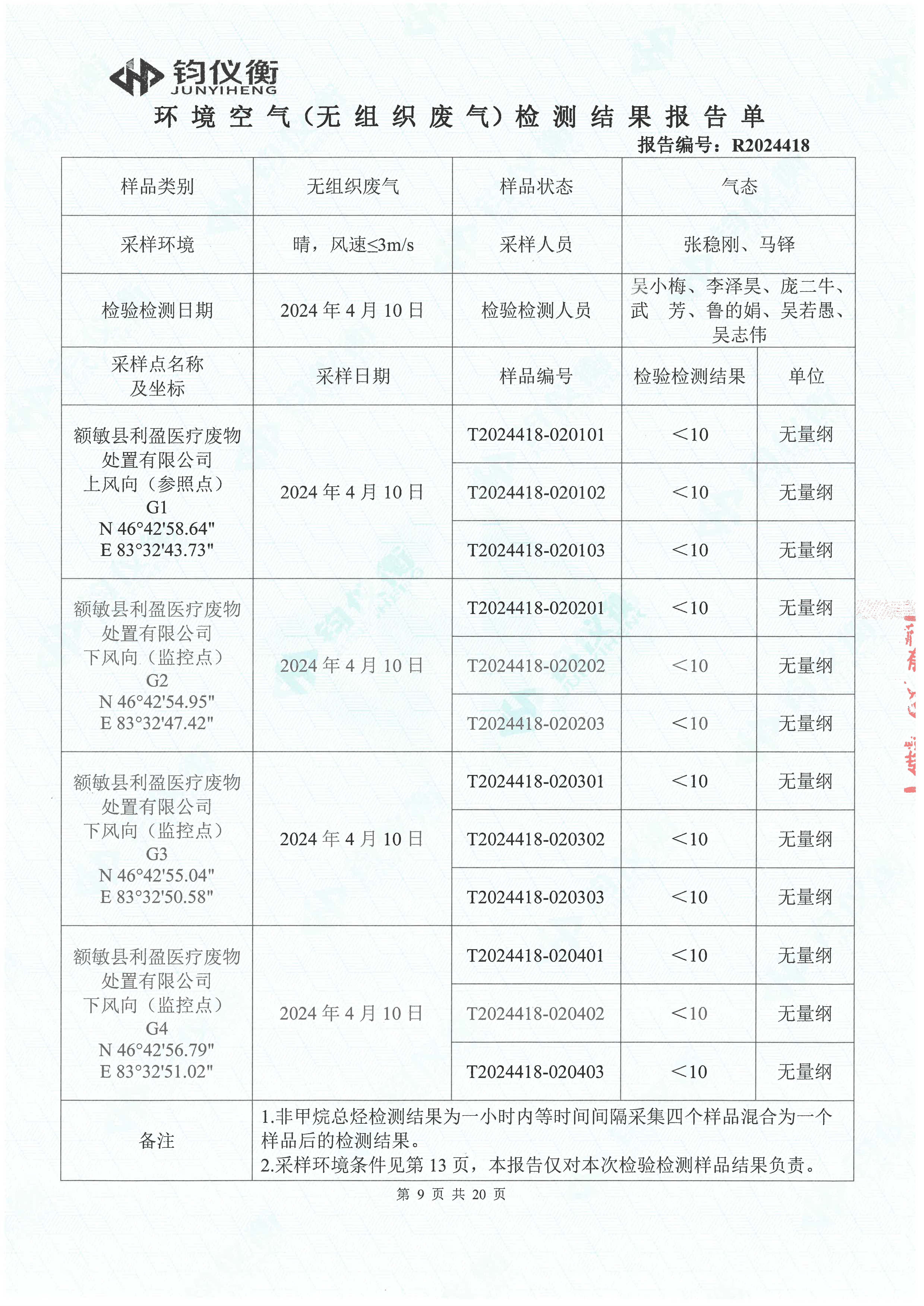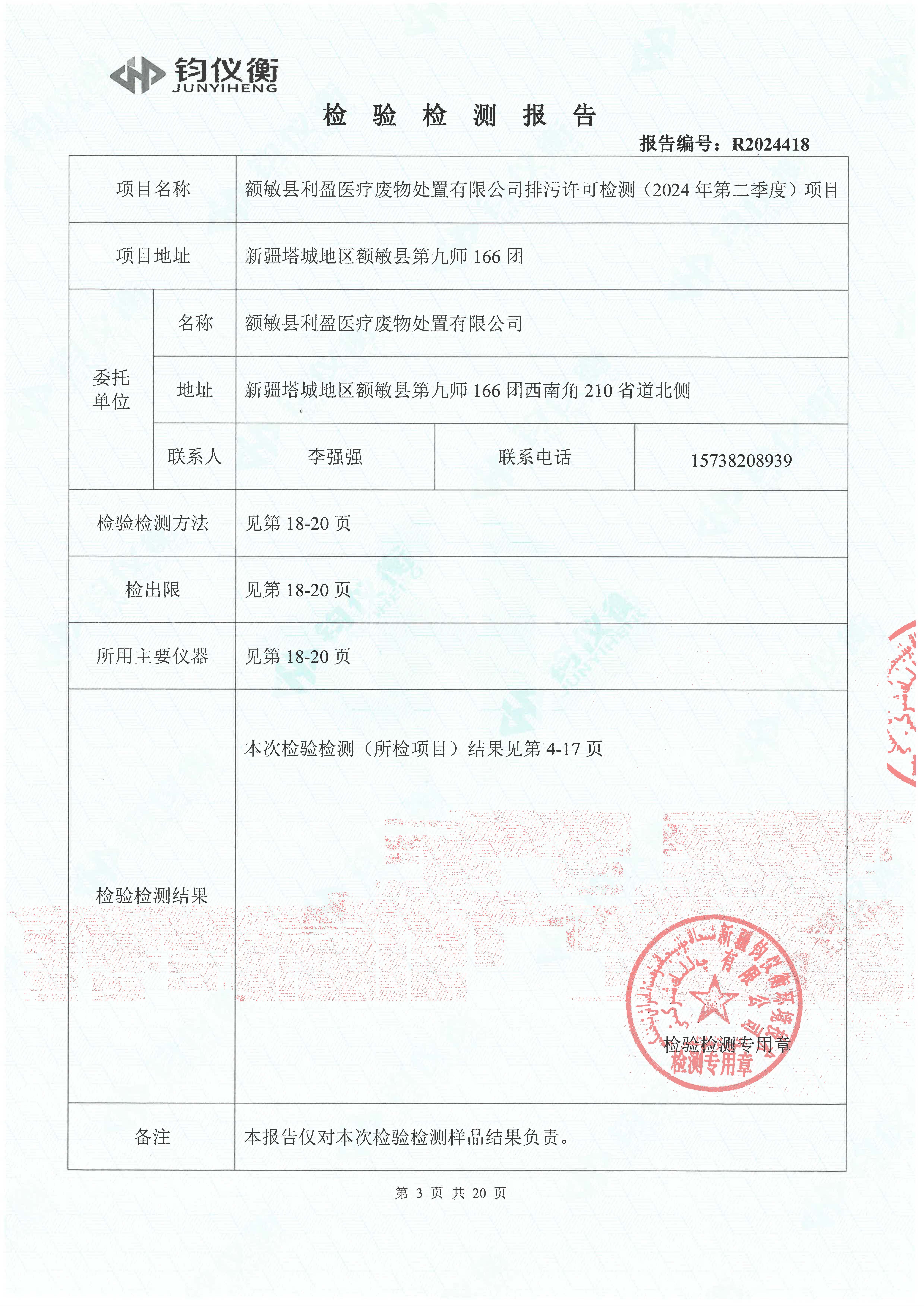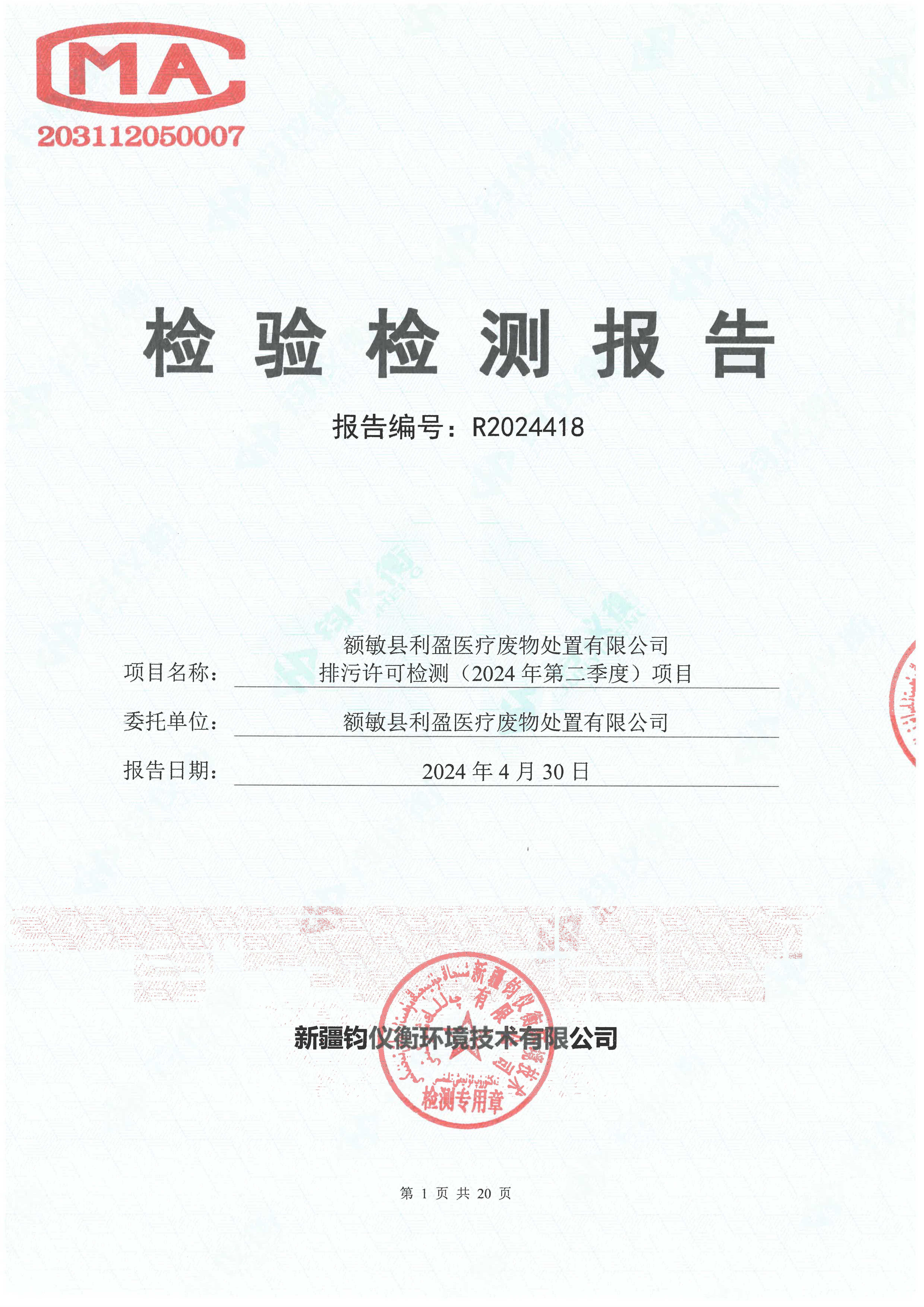 额敏县利盈医疗废物处置有限公司排污许可检测(2024年第一、二季度)信息公开_河南省利盈环保科技股份有限公司