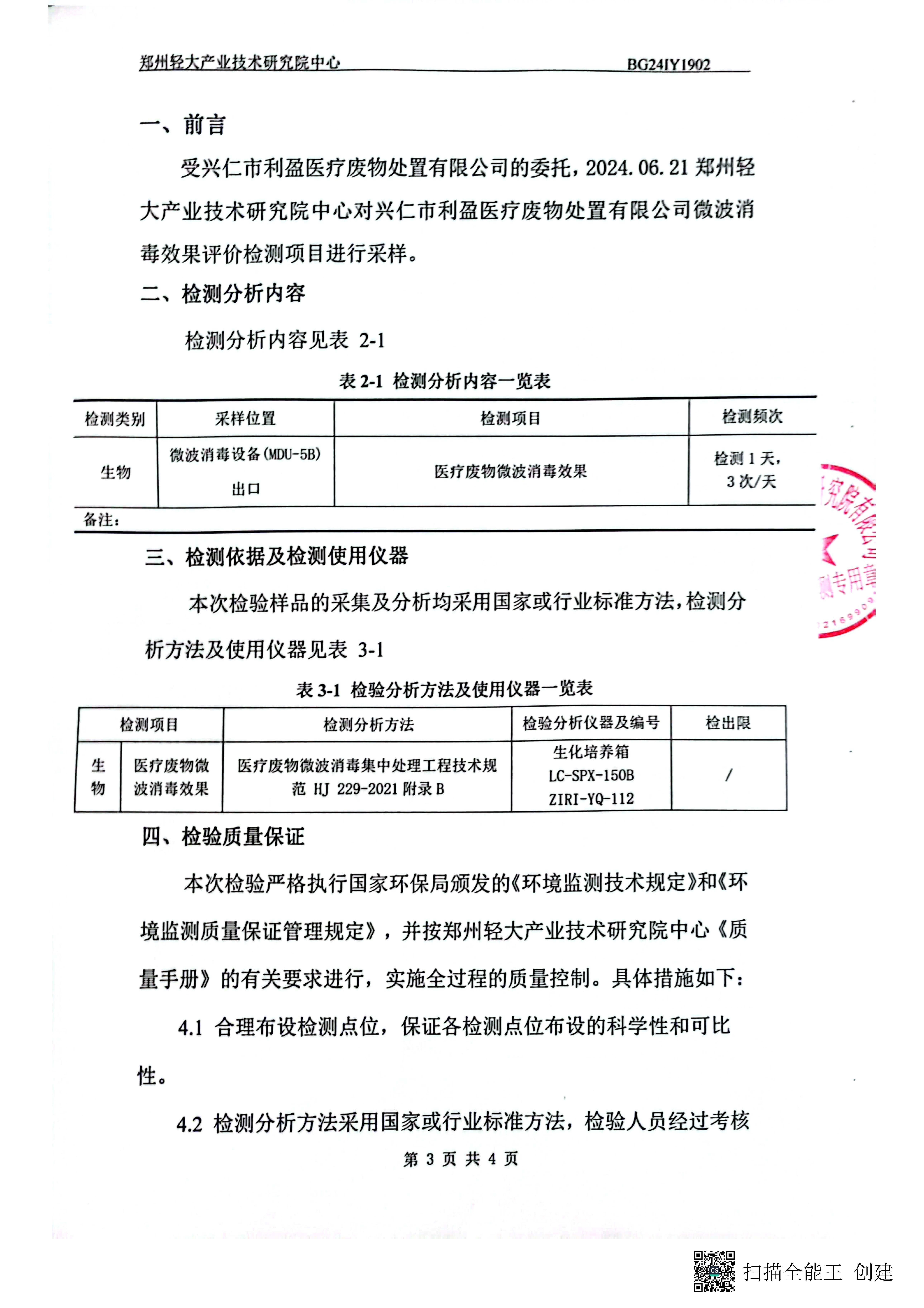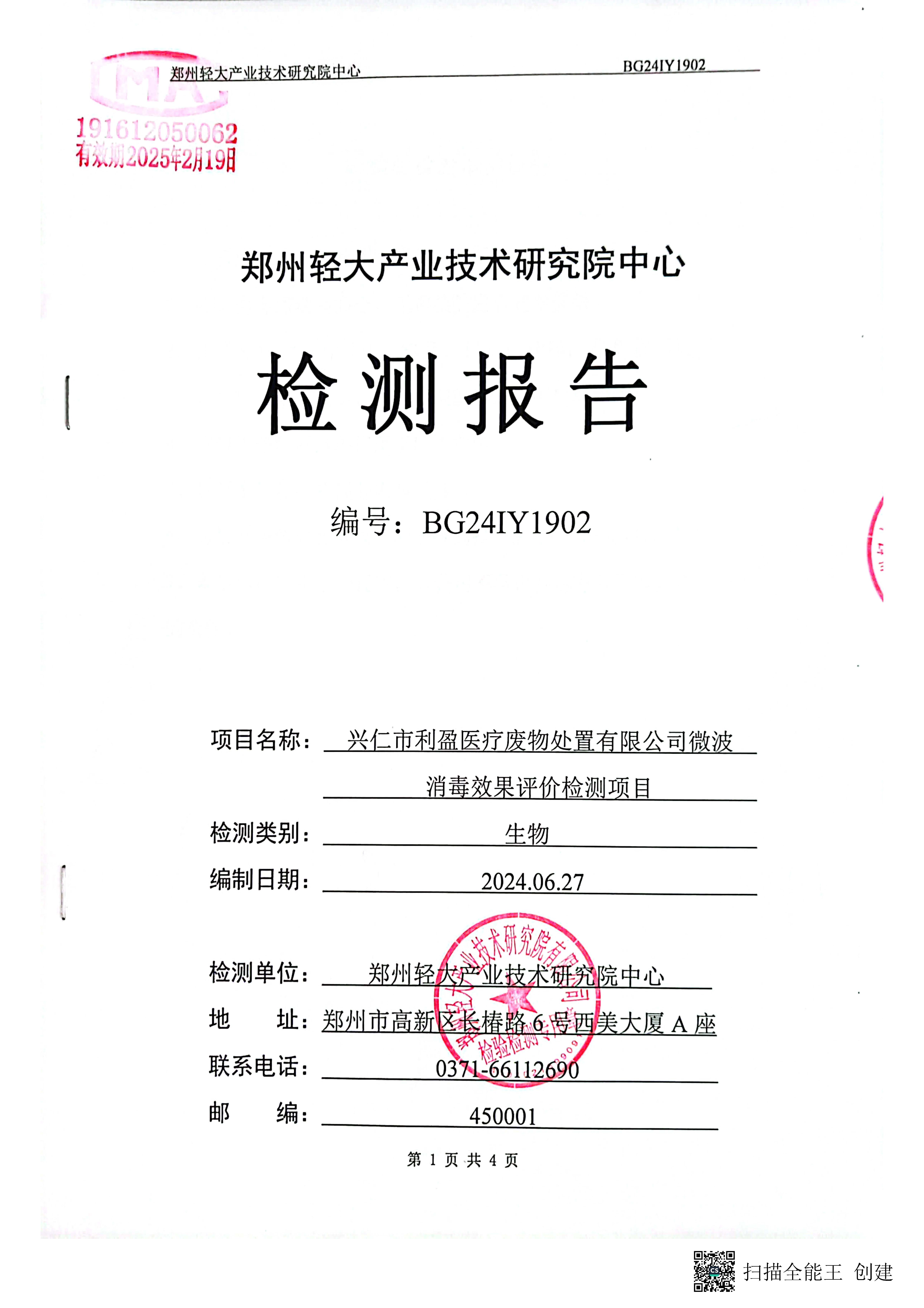 【概要描述】兴仁市利盈医疗废物处置有限公司2024年第2季度消毒效果检测信息公开