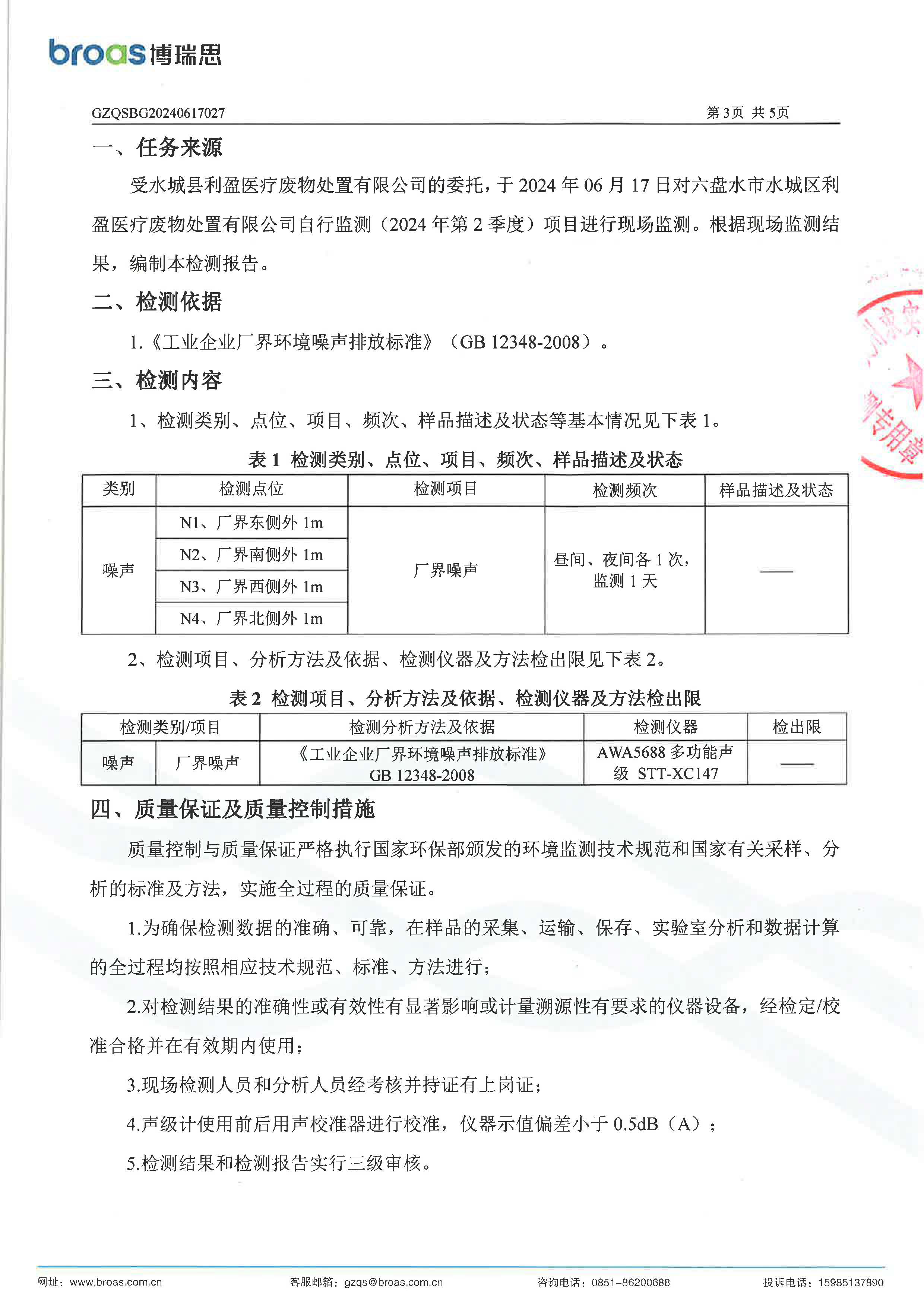 【概要描述】六盘水市水城区利盈医疗废物处置有限公司2024年第2季度环境自行检测信息公开(噪声)