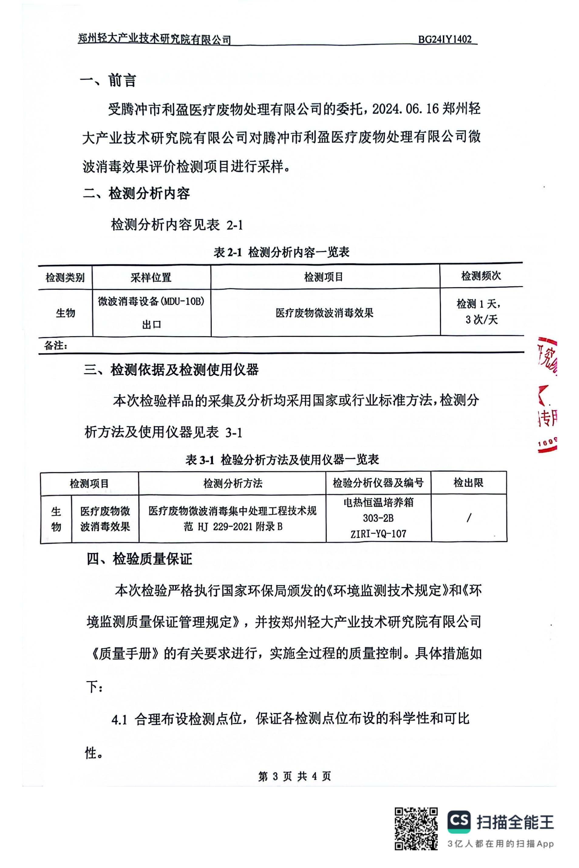 【概要描述】腾冲市利盈医疗废物处理有限公司(MDU-10B)2024年第2季度消毒效果检测信息公开