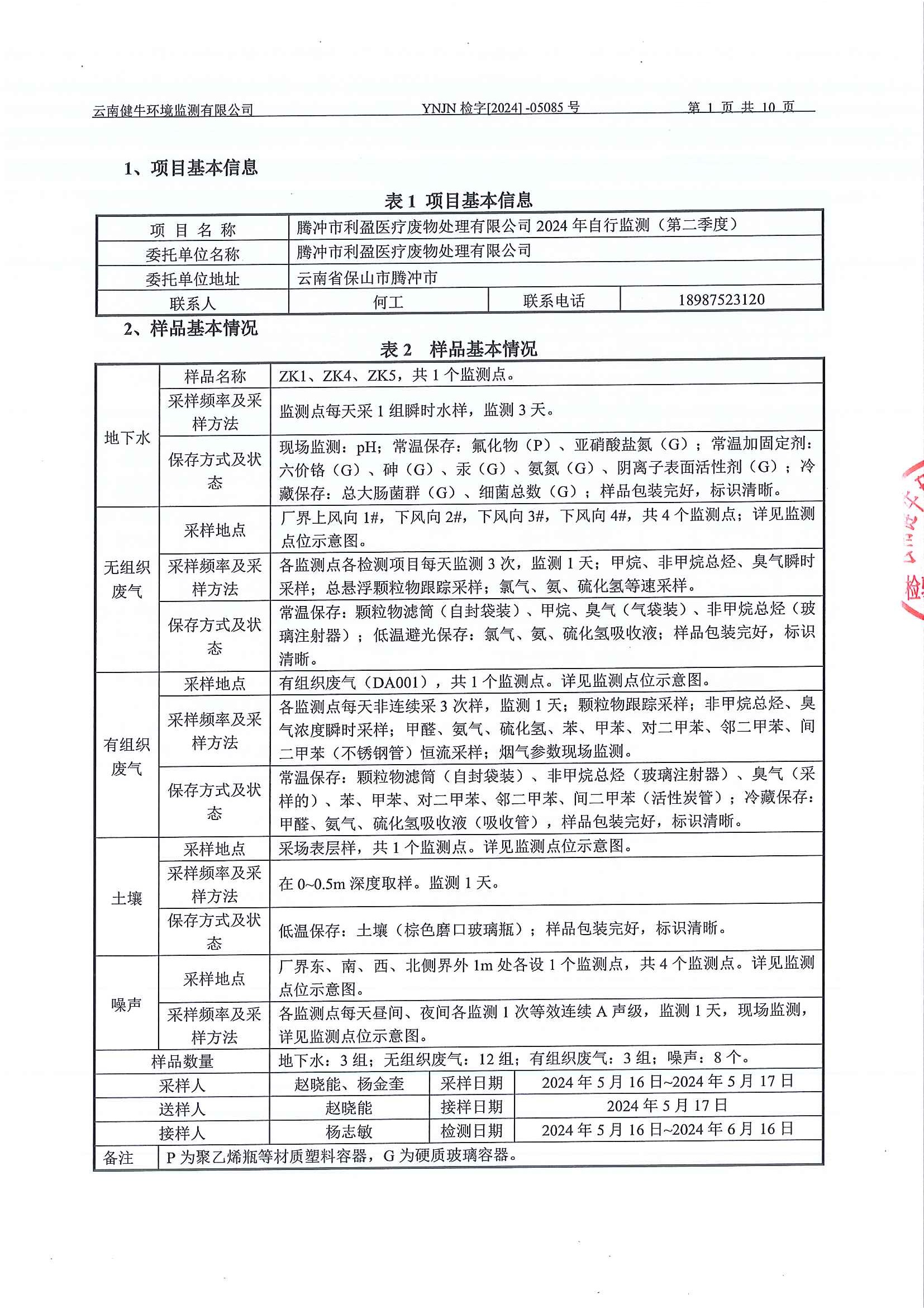 【概要描述】腾冲市利盈医疗废物处理有限公司2024年第2季度环境自行检测信息公开