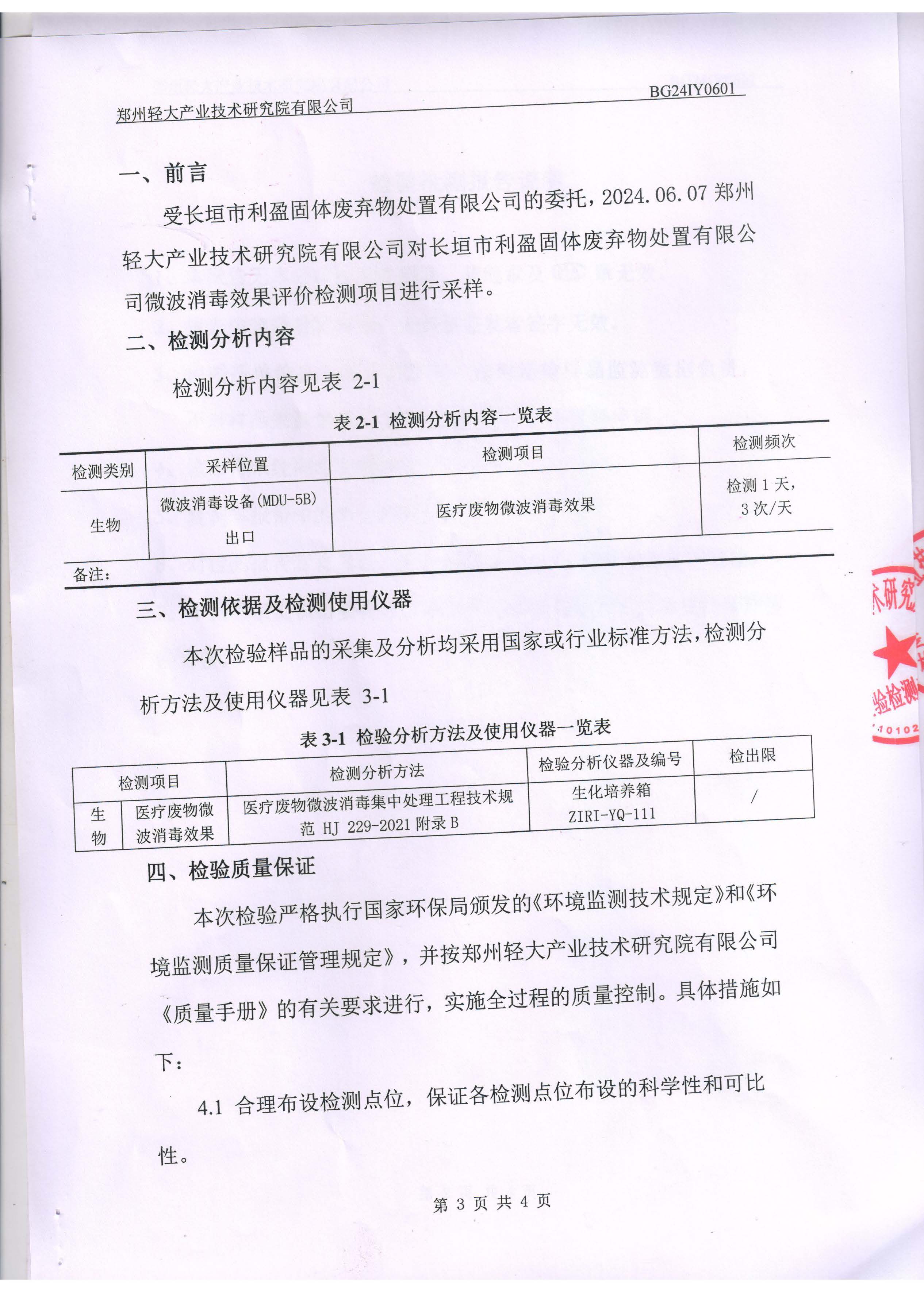 【概要描述】长垣市利盈固体废弃物处置有限公司2024年第2季度消毒效果检测信息公开